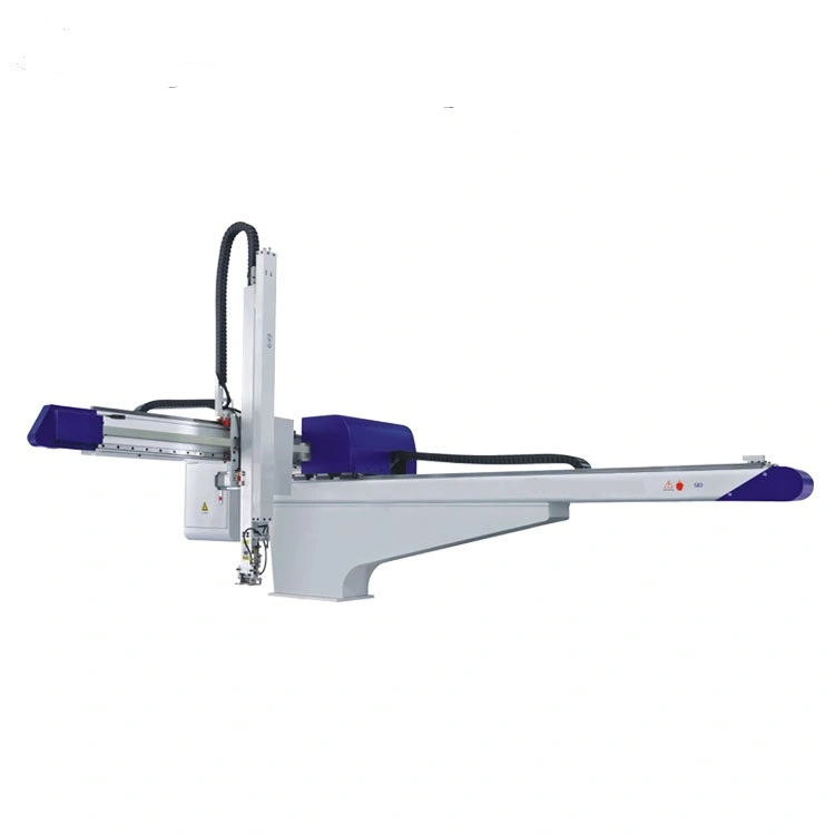 1-Axis AC servo injection robot arms are extensively applied to horizontal plastic injection machines ranging from 50~1600T which can take out the runners, runner and finished products from the mold of plastic injection molding machines. Injection robot arm have two types of arms-single stage and telescopic. The vertical strokes for single stage are 600/700/800/900 and for telescopic are 600/800/900/1000/1200mm. The arms move stably thanks to two sections of double speed structure. The traverse movement is driven by high performance AC servo motor. With different requirements of products, injection robot arm can work with various grippers and jigs to realize stable and perfect take-out products from mold by quick-descent of removal of products and slow-descent to place outside.