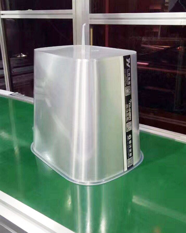 Next, we put "clothes" on that trash can, with the help of the customized automated in-film labeling system of the robotic arm. Look how beautiful it was!
